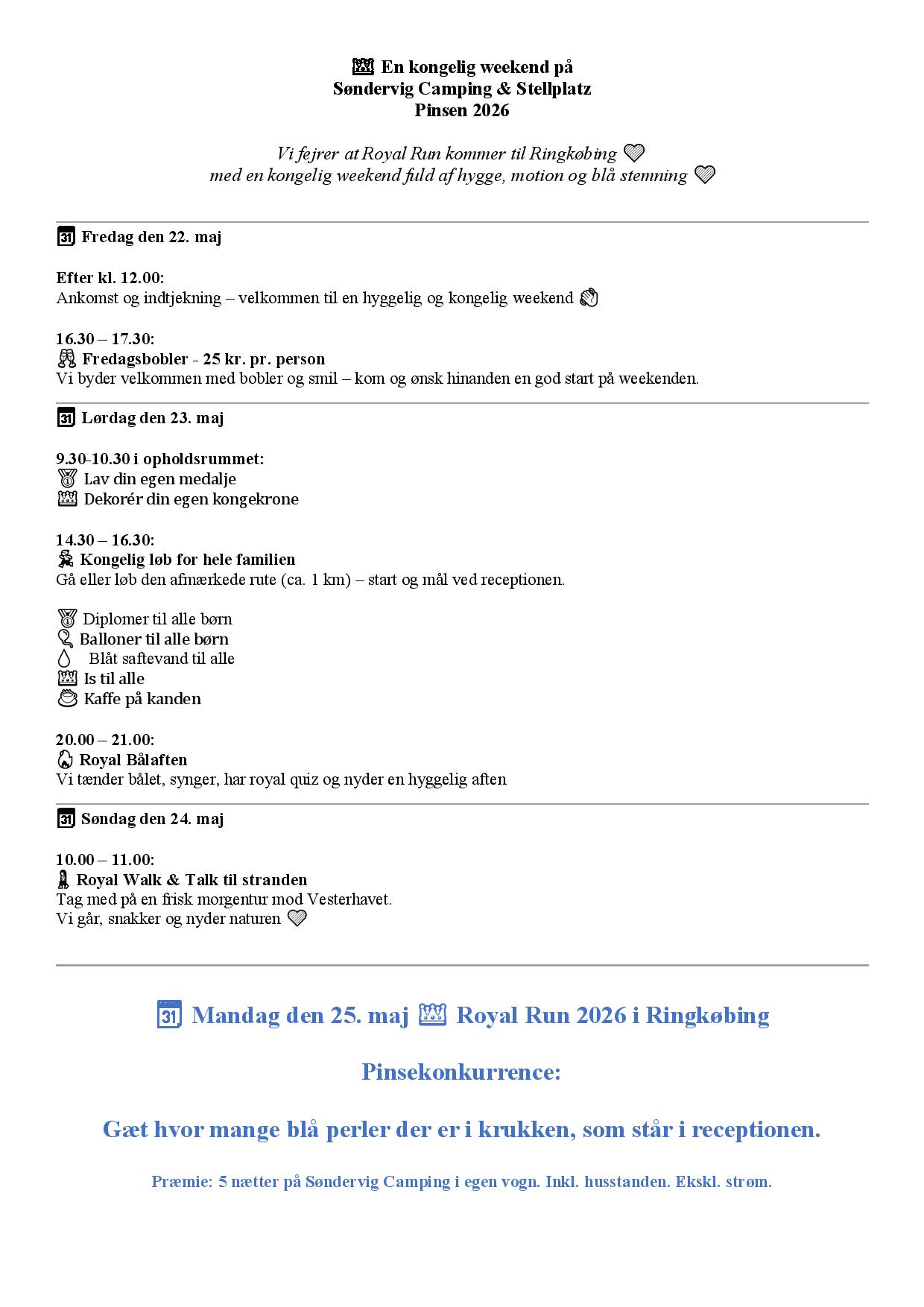 Hertil kommer solnedgangsgudstjenesterne på stranden, som efterhånden er blevet et fast højdepunkt. Hvert år fyldes med oplevelser, der binder campinglivet og Søndervigs særlige atmosfære sammen.